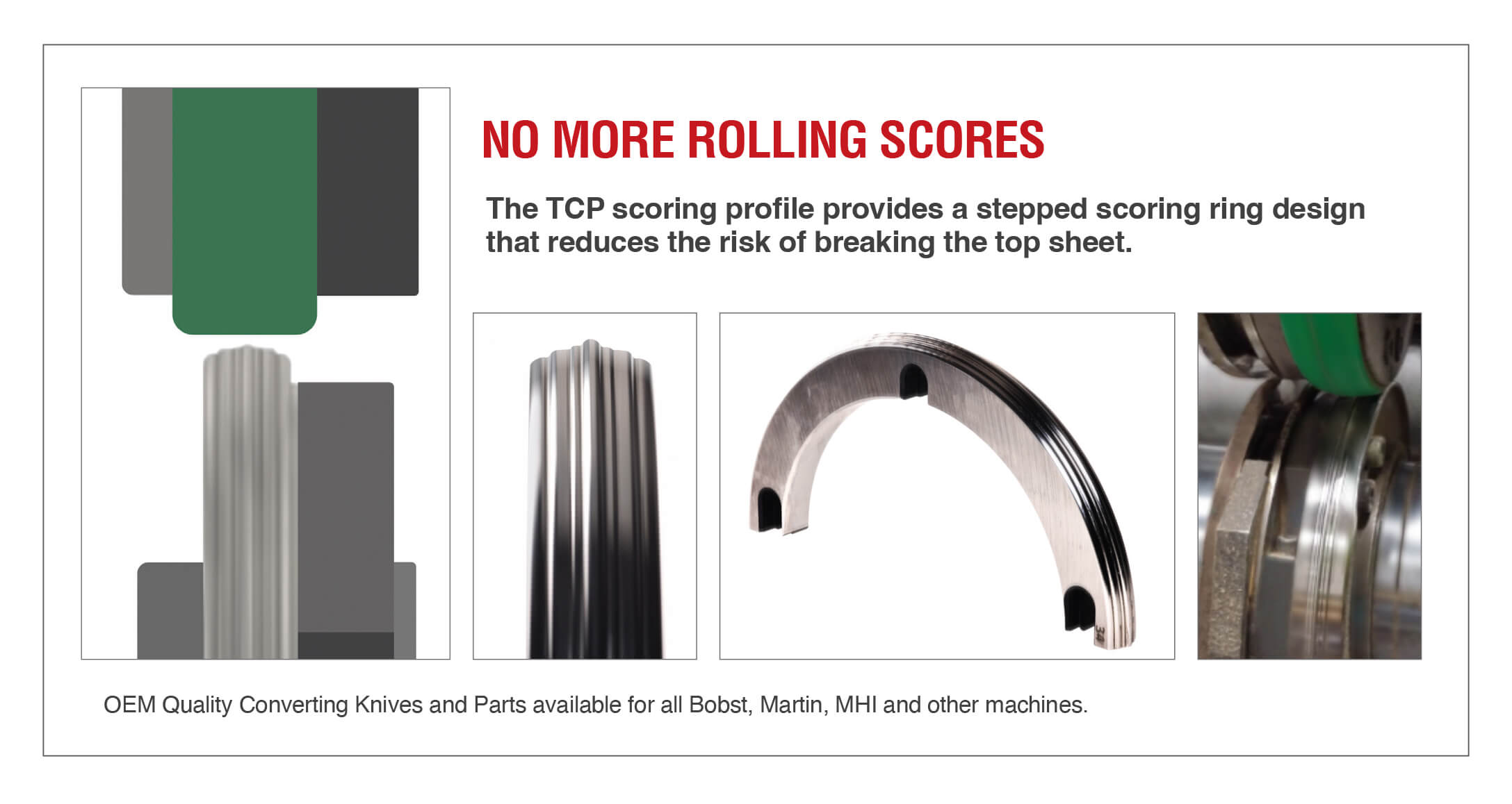 Our TCP Scoring Rings are available in various heights depending on the application. Ask about upgraded versions and replacement parts for your machines.