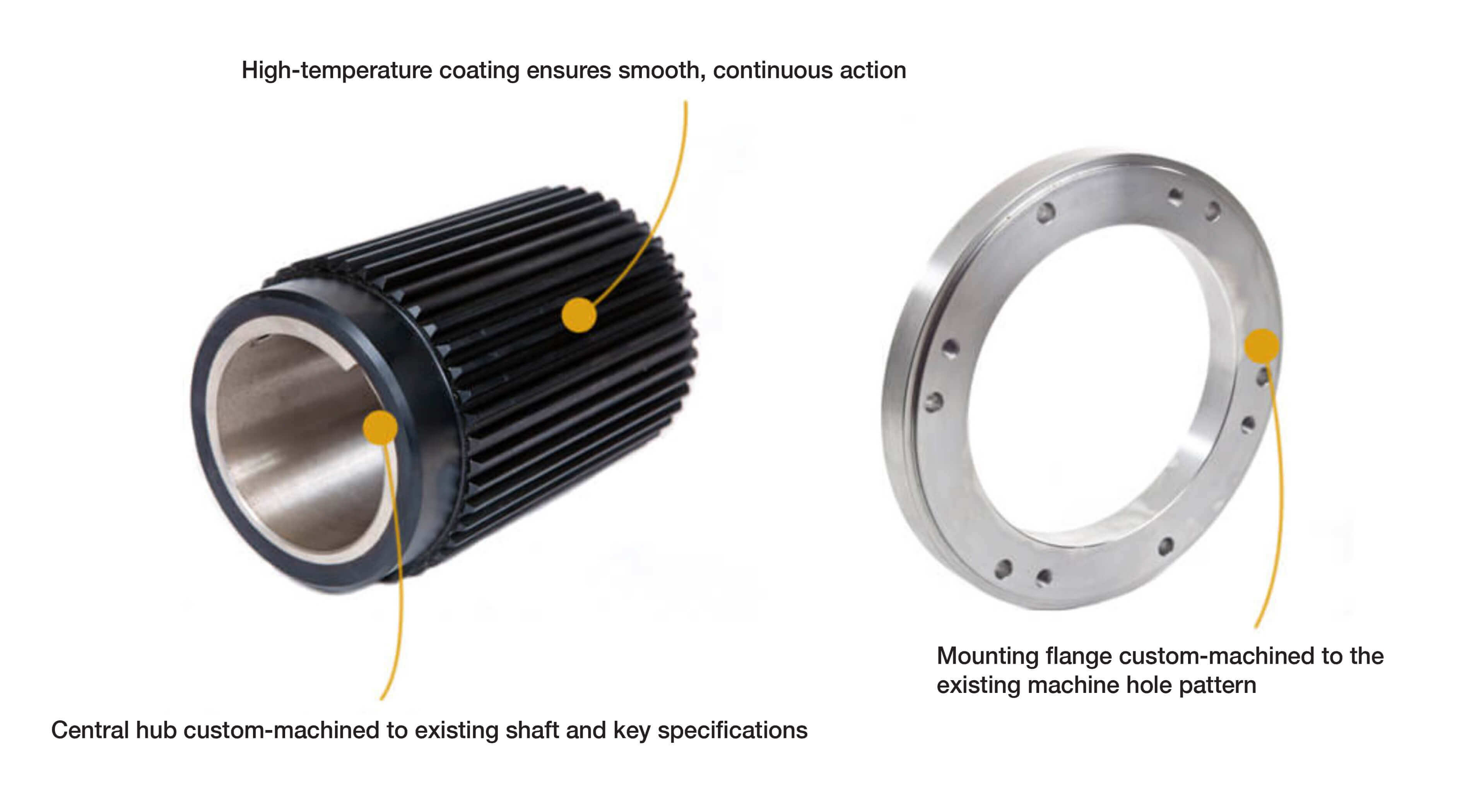 Because of the lowered temperatures, web tension control is improved at any line speed and brake pad wear and pollution are virtually eliminated. The Turborex Brake is 100% adaptable to all existing rollstands and Erhardt+Leimer bridge control system. No modifications are required on the machine to upgrade.